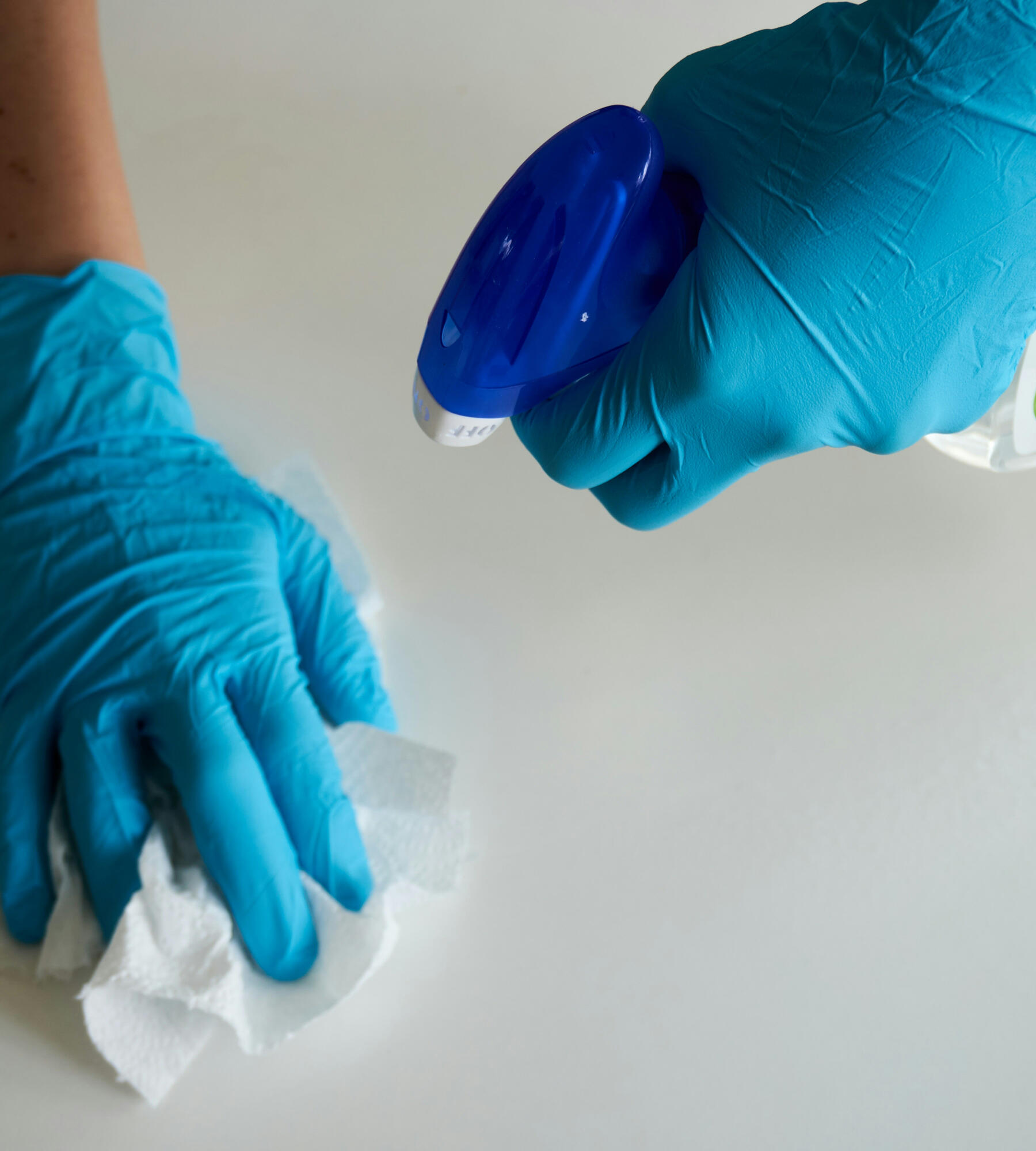 Disinfecting and wiping kitchen counters